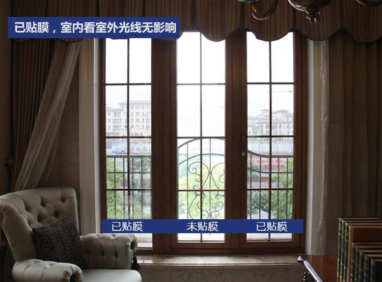 玻璃隔熱貼膜的表面反射效果能形成單透視,在遮陽的一起給家居完美的視覺效果,無需整天拉起窗布,外人看不到屋內景物。