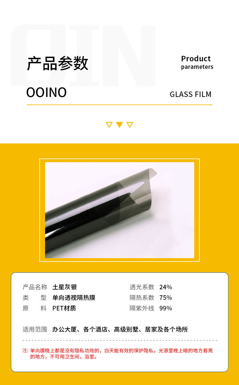 貼膜型號:防曬隔熱玻璃貼膜