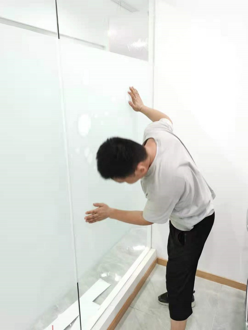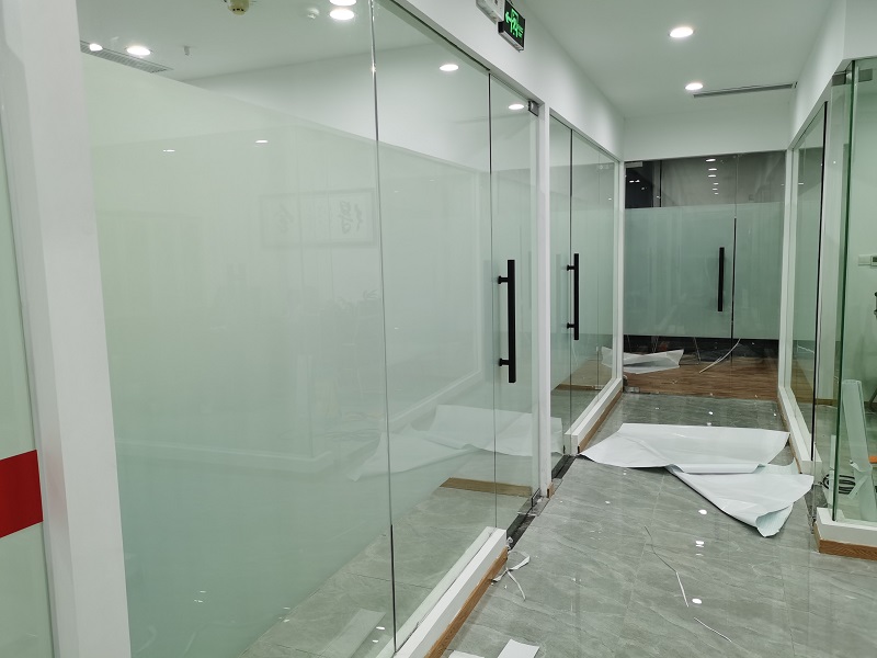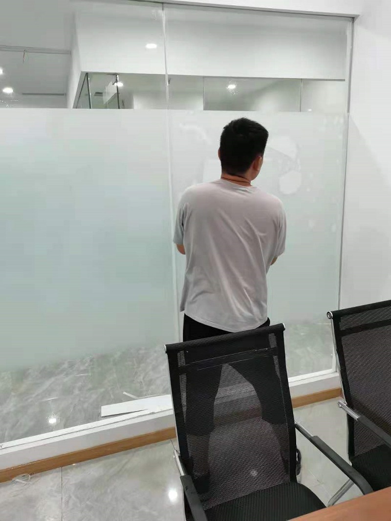 案例介紹:辦公室玻璃隔斷,為了室內(nèi)更好的采光,但是透明玻璃隱私性欠缺,最終選擇邦臣窗膜,透光不透明磨砂膜,既能保證光線,又能保證辦公室的隱私性