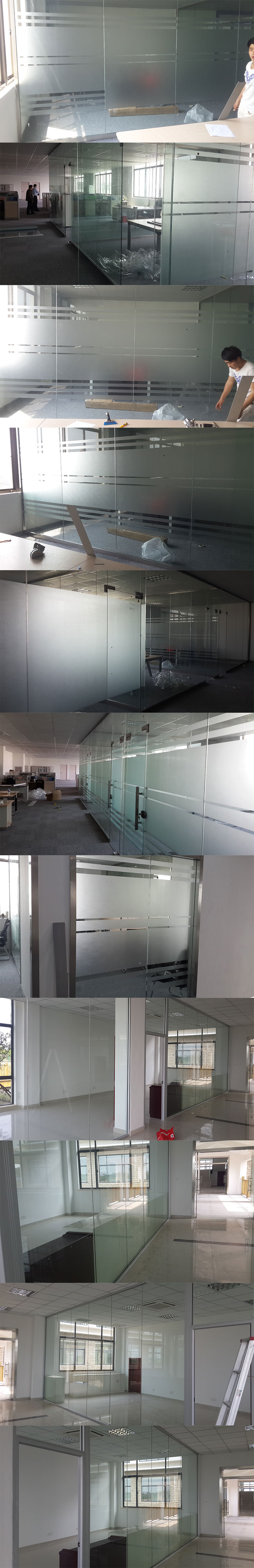 客戶需求:減少刺眼眩光,磨砂膜減少視覺疲勞,保護視力,改良大廈工作環境。平安環保,玻璃磨砂貼膜擁有加固玻璃強度性能,是對抗地震、颶風及室外爆炸的可靠武器,還能預防罪犯簡便地破窗入室,謹防玻璃分裂飛濺傷人,有用地保護人身平安。